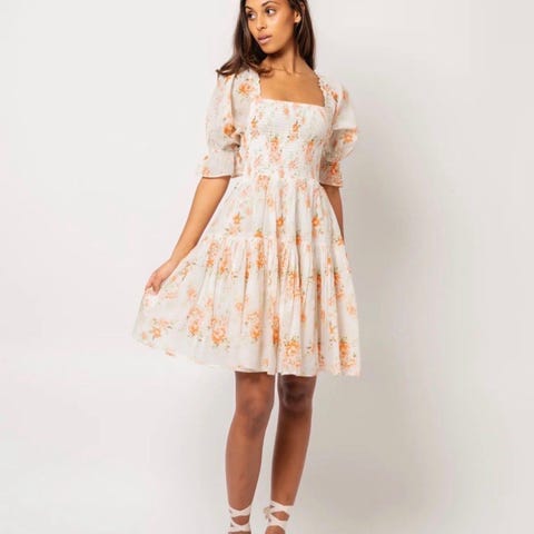 Vakker minikjole fra By Timo med delikat blomsterprint str xs selges kr 700,- + evt porto.