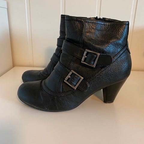 Lite brukte skoletter i skinn, sr. 37. Stretch i ankel og rund, god passform.