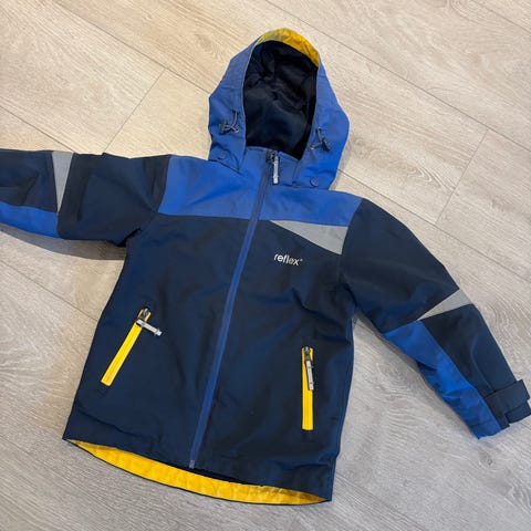 Flott jakke fra reflex som tåler vann i str 7 år. Avtakbar hette og flere reflekser på.