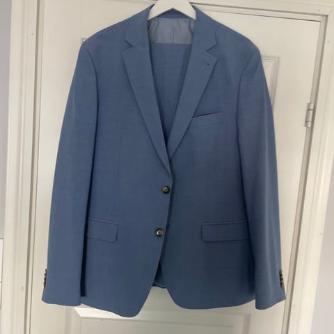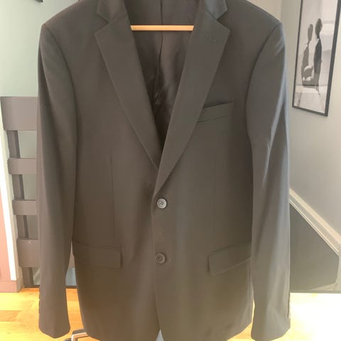 Brukt en gang, selges da den har blitt for stor. Str på dressjakken er 54R, og buksen er 36/32.