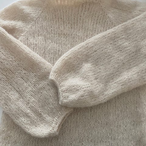 Skappelgenseren i nydelig dus rosa, strikket av min tante. Myk og deilig alpakkaull. Vil si den passer str. S-L – kommer an på hvordan du ønsker at den skal sitte. Hakket lengre bak enn foran (som er meningen). Knapt brukt.