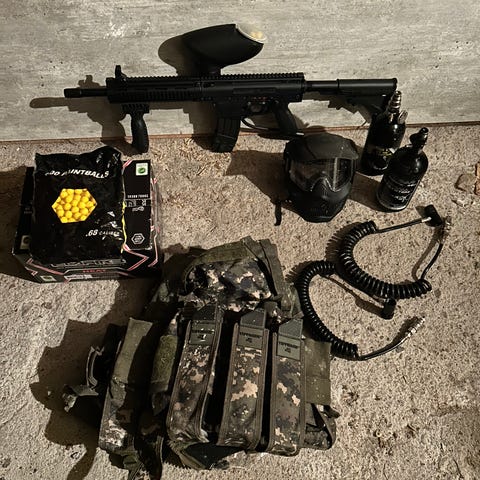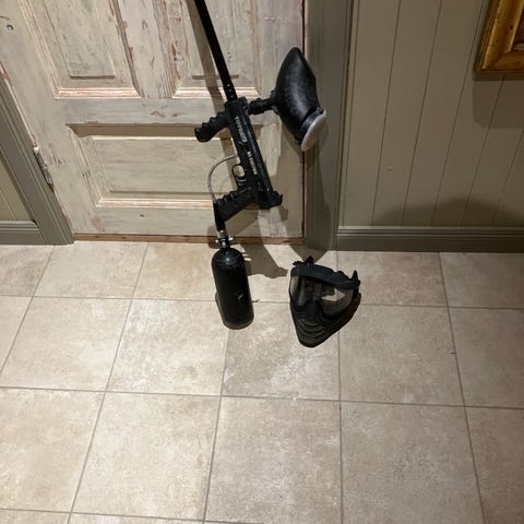 Tippmann Tango One paintballgevær med gasstank og maske. Kjøpt i 2014 men har ikke hatt tid til å bruke det siden.