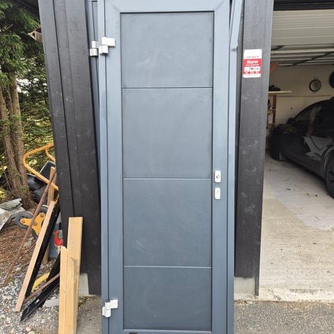 Leveres med karm, låskasse, sylinder og vrider. Tetningslist er integrert i karm og terskel.