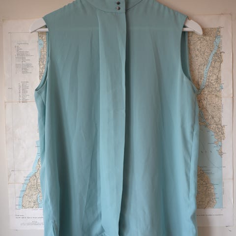 Pen bluse / topp fra Mango. Tre kvart arm med strikk. Knapp i nakken bak. Lite brukt. Hvit.