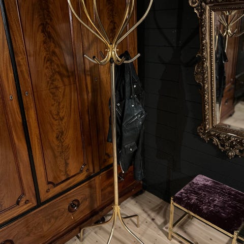 Nevner : Skjenk pent malt - kupp ! Flott kiste årstall 1801 - fin puff med oppbevaring - solide lagerhyller - krakker /broderte - hyttelamper - pigetitter / sminkespeil - retro garderobestativ i metall - rundt spisebord i tre - lysekrone / utskåret i tre - vugge ubehandlet tre - mange dekorative sjalusier for vindu eller til skjermbrett - nydelig rosemalt todelt skap - tallerkenhylle - diverse pyntegjenstander, noen rosemalte.