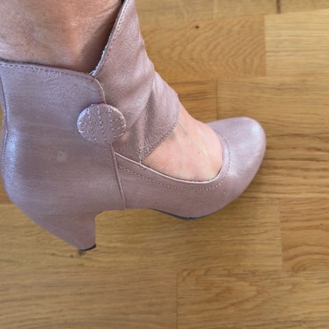 Meget pent og lite brukt ( et par ganger max).enden av hælen er noe slitt, men byttes Lett ut ved behov