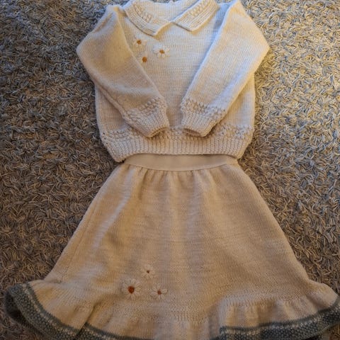 Ull. Pen tynn varm BEIGE LUE. Strikket BLOMSTER.