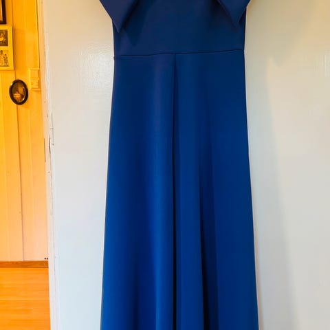Vurderer å selge denne tidløse og klassiske kjolen fra JJ House, da den er litt for stor (bruker 36). Størrelse 38. Nydelig og tungt stoff i dyp kongeblå. Off-shoulder med fine detaljer. Kr. 1500,-