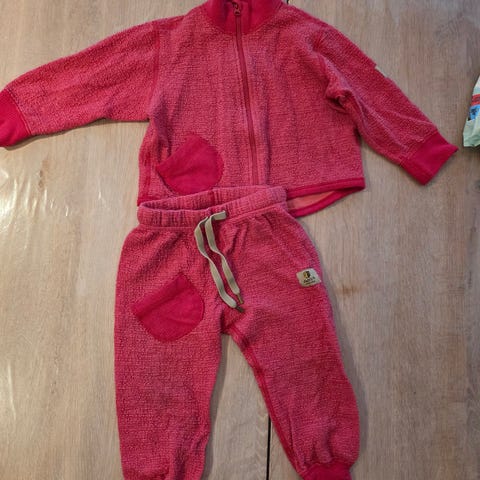 Selger en nydelig ullpakke fra Janus. En høyhalset pologenser, en genser, en longs og en ulljakke med glidelås og lommer. Nydelige blondedetaljer Alt i samme rosafarge og alt er størrelse 90. Finner ingen anmerkninger.