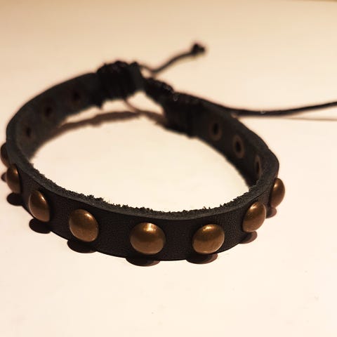 Kult skinnarmbånd med sølvfarget dødningshode selges.