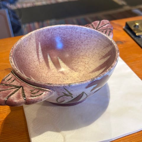 Den har ingen skår, men har en gammel sprekk, men bare sjarmerende og like god.