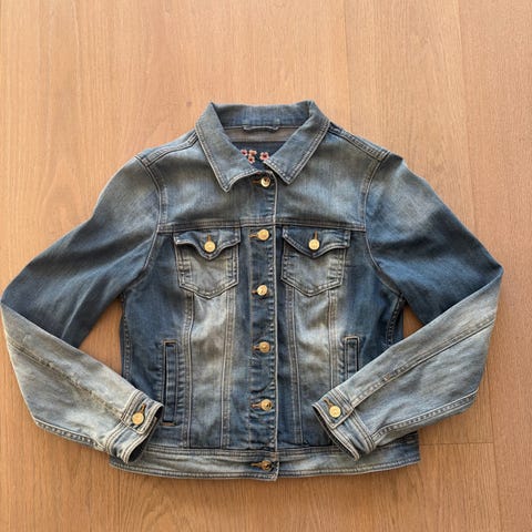 Fantastisk kul olajakke fra Lee. Kort og smal i modellen, sitter kjempefint. Strl xs. Svært lite brukt, kun noen få ganger.