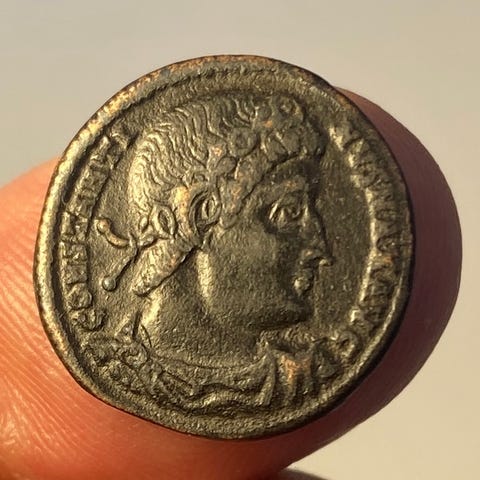 Dette er en av de tidligste minnemyntene som er preget. Den ble preget da Constantin den Store gjorde Konstantinopel til ny hovedstad i Det romerske keiserriket. Roma fortsatte å ha status som hovedstad, og etterhvert ble det etablert en ordning med en keiser i øst og en annen i vest. Den nye byen ble en stor suksess, og var i mer enn 1000 år en av de viktigste byene i Europa. Konstantinopel var ikke bare et senter for det romerske keiserriket (som vi kjenner som Det bysantinske riket), men også et av de viktigste sentrene for kristendommen. Konstantinopel falt til osmanerne i år 1453, mens den gamle hovedstaden Roma falt til barbarene lenge før, i år 476