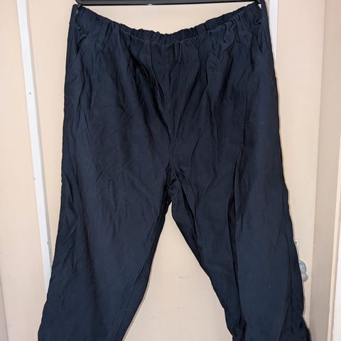 Brukt par ganger. Mørke blå. Lengde 85, rundt hoftene 105, rundt beltet 76cm
