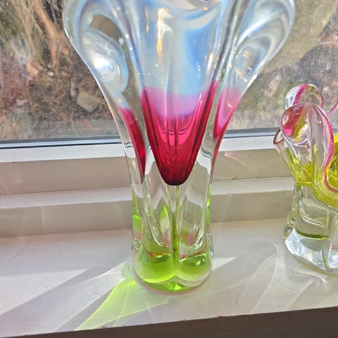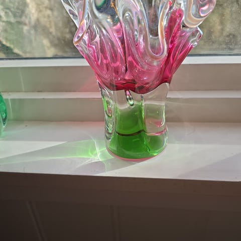 Den rosa: Høyde: 25 cm og diameter ca 18 cm. Pris: 2300 kr