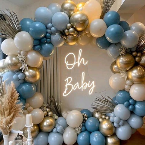 113Pcs Party Background Decoration Supplies Blue Gold Color Balloons. Perfect For Decorating Birthday.