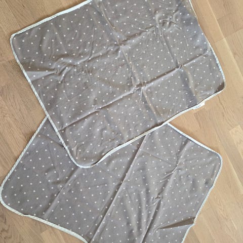 Pent brukt. Dyntetrekket er ca 75x65 cm. Putetrekket er ca 45x35 cm