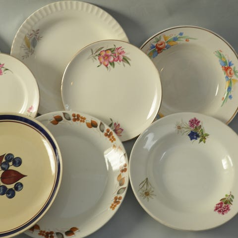 8 kopper i benporselen med rosemotiv