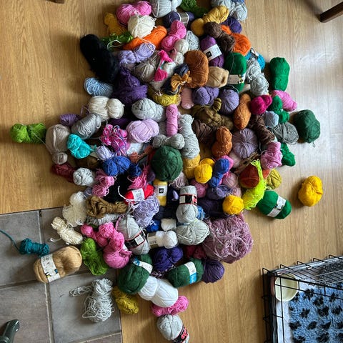Påbegynt heklearbeid i mange farger til videreutvikling