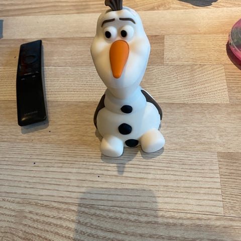 Olaf figur. Lyser når man rister den, og slukkes etter ca 1 min. Batteridrevet.