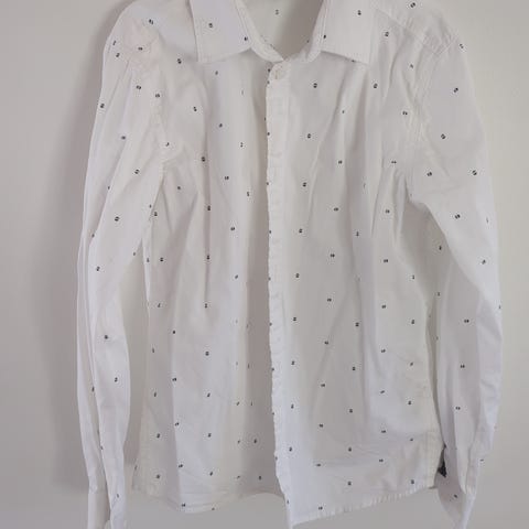 Selger en skjorte fra Polarn o pyret i str 122 (6-7 år). Skjorten er pent brukt og er kun brukt et par ganger. Den har ingen slitasje, men en minimal misfarging nederst (se bilde). Ny pris 350 kr. Selges for 150 kr.