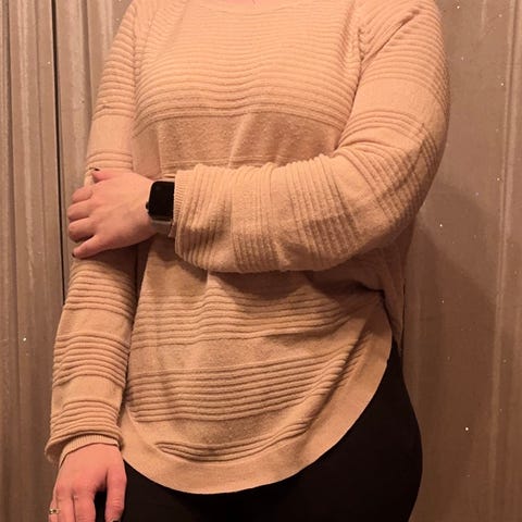 Genser med teksten: your brokenness is welcome here. Knytta til ein kristen bodskap. Behageleg genser som desverre ikkje passar lenger.