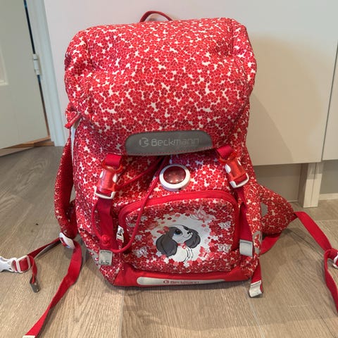 Beckmann skolesekk. Brukt av ett barn. Sekken er vasket. Selges for 100,-