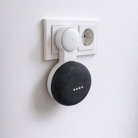 3D printet holder til Google Nest Mini. MEd denne kan du ha Nesten hengende på veggen og med Kablene skjult i feste.