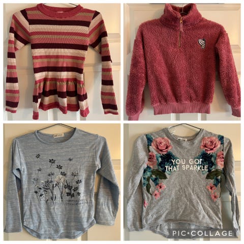 3 gensere, 2 i 128 og den stripene fra nameit i str 116 men er like stor som de andre. Selges samlet Kr 100. ,-