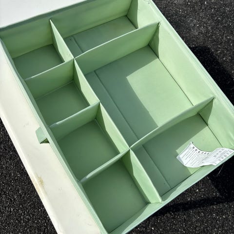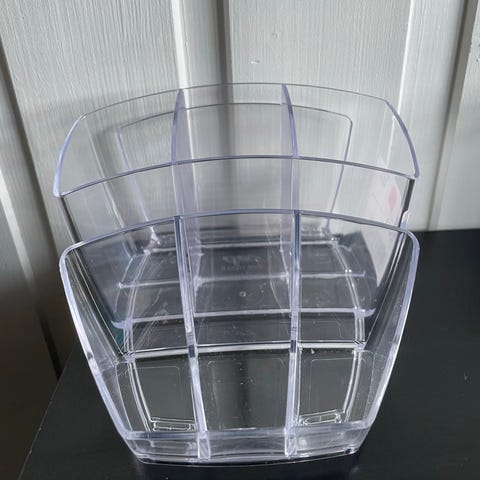 Oppbevaring til enten skruer/spikere eller andre ting og tang som binders, små-klyper, sikkerhetsnåler, trådsneller, eller til å sortere perler etter farger.