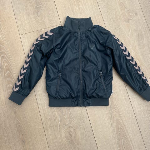 Pent brukt svart Hummel jakke i størrelse 16 år. Kun litt slitasje i refleks stripe framme på jakken, ellers hel og fint brukt. To lommer med glidelås. Hette på jakken. Foret innside.
