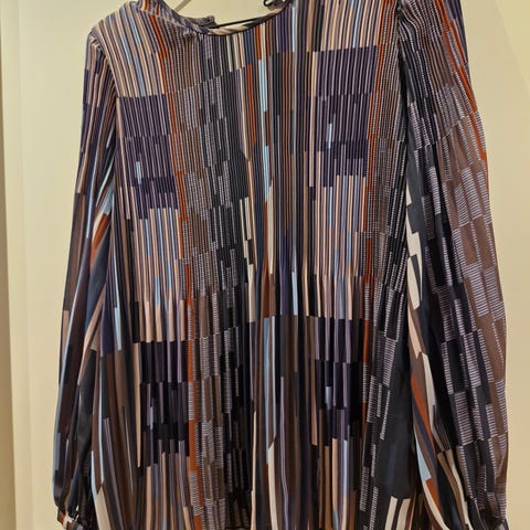 Flott tynn bluse med lange ermer selges for 25 kr. Den er v-formet i halsen og har knytebånd. Litt gjennomsiktig.
