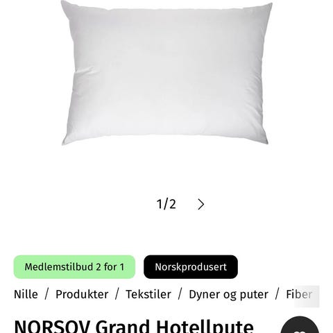 Selges da den ikke har blitt brukt. Putetrekk i rosa bomull følger med 🙂 60% hvite andefjær, 40 % mikrofiber.