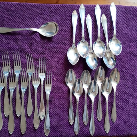En del eldre og nyere bestikk (4 Skaugum kniver, 2 stk. skjeer i 850S er solgt),