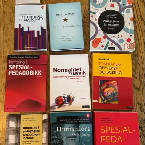 Bøker i god stand. Alle er kjøpt nye med unntak av Innføring i spesialpedagogikk og Normalitet og avvik. Bøkene har noe markeringer. Bud/diskutere pris går an. Kjøper du flere kan du for eksempel få rabatt.