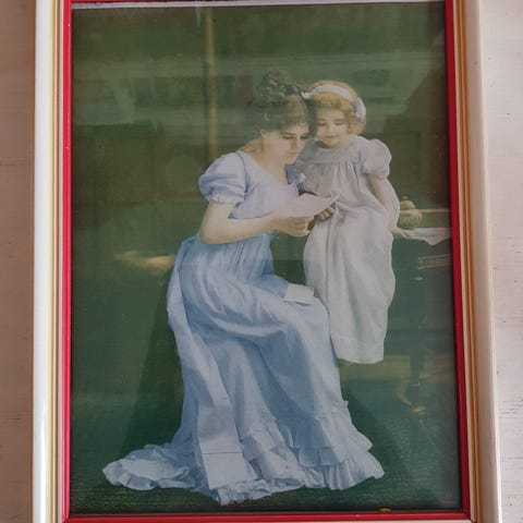 Nydelig bilde med mor/barn motiv i eldre stil. Usikker på hvor gammelt dette er, men kjøpte det i en bruktbutikk for 15-20 år siden. Både bilde og ramme er i gammel stil.