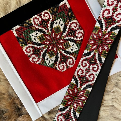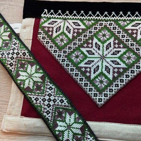 Broderer korssting og perler på annet tilbehør også. Eks hårbånd og motiv til veske. Spør gjerne om du lurer på noe😊