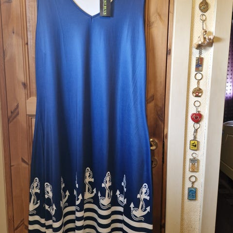 Fin lang blå kjole str. 50/52