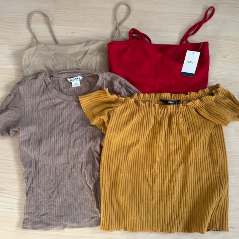 Fin Klespakke bestående av 4 topper og 1 skjørt med trekte knapper. Nesten ikke brukt. Selges Kr 100