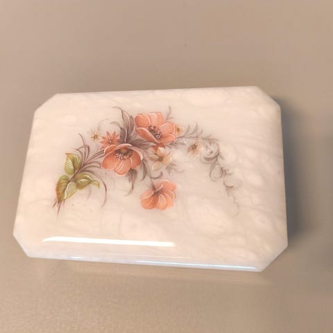 Ny eksklusiv enestående smykkeskrin. Denne håndlagde esken er original og unik, laget av tre og decoupage-teknikk.