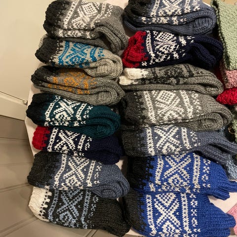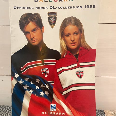 OL-genser fra 1992, OL i Albertville, strikket i Heilo fra Dale garn, str ca 10-12 år, svært lite brukt.