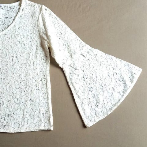Kremfarget lace topp kortermet fra Hofman Copenhagen
