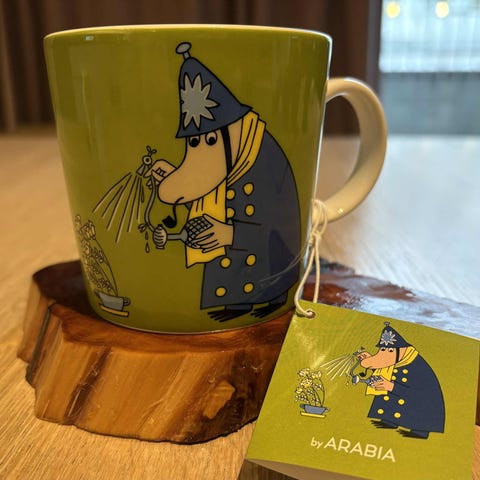 Denne spesielle Mummidag-koppen med skjærgårdstema er laget til feiringen av Arabias 150-årsjubileum. Den håndtegnede illustrasjonen er basert på boken «Pappaen og havet», der Mummifamilien flytter til en øy ettersom Mummipappa føler seg overflødig i den fredelige Mummidalen