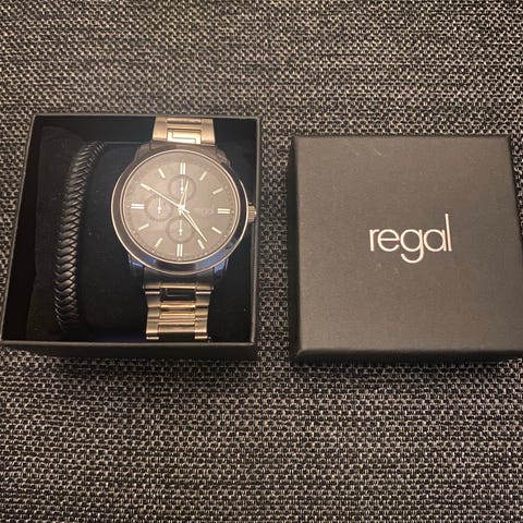 Pent brukt klokke - satt ned i pris! Mye og flott klokke for pengene, enten den er til hverdags eller pent. Flere ledd som følger med. Er ikke brukt på en stund så batteri må skiftes. Fungerer som den skal da den er lite brukt.