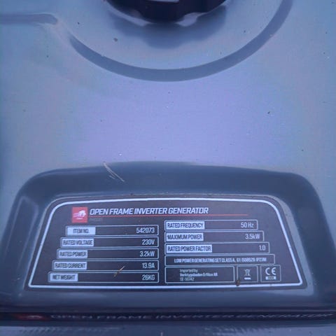Kipor strøminverter 230 v / 12 v , vekt på aggregat er 14 kg. Lavt støynivå leies ut 200.- pr dag evt 500 pr uke