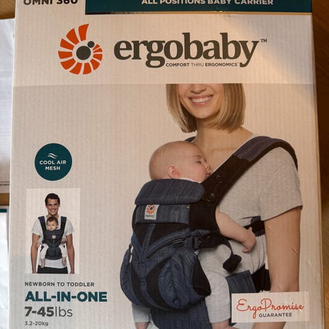 Pent brukt Ergobaby Omni 360-Pure Black. Ble kjøpt Desember 2021 og brukt mest i sommer 2022.