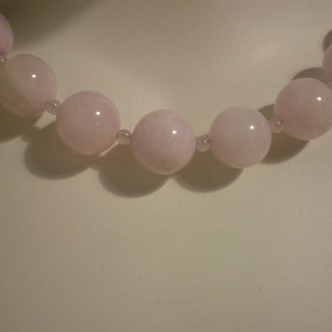 Kjede med graverte ekte Rosenquartz. L=ca 50 cm.