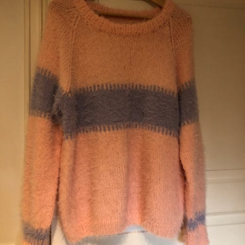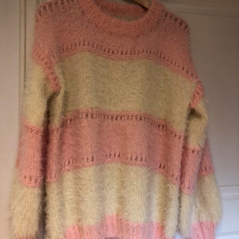 Strikket genser i pusegarn selges.