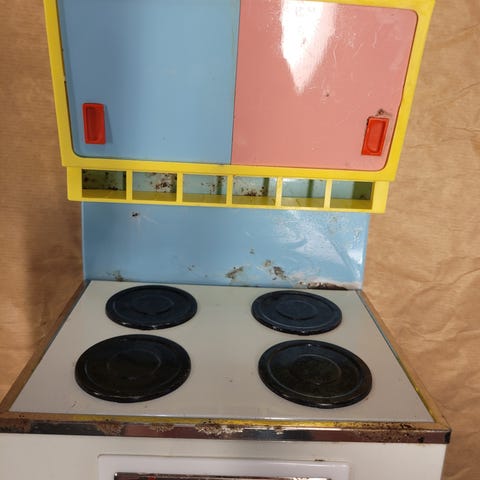 To eldre dukker. Den største er 21 cm høy, øynene lukker og åpner seg ved bevegelse. Ben og armer er bevegelige. Den er laget i hard lett plast, trolig celluloid.
