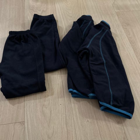 Pent brukt mørk blå fleecebukse fra Bergans str 122. Strikk i livet og ved anklene.